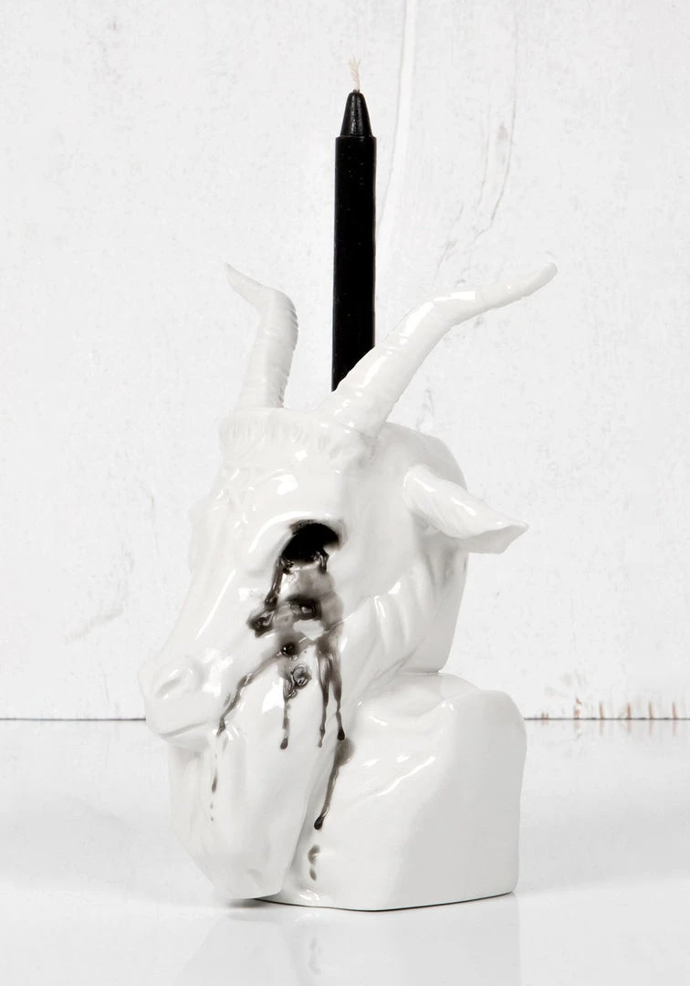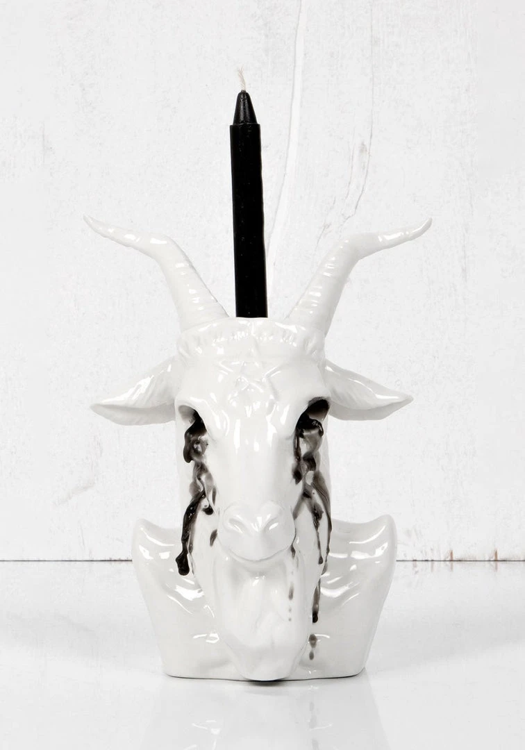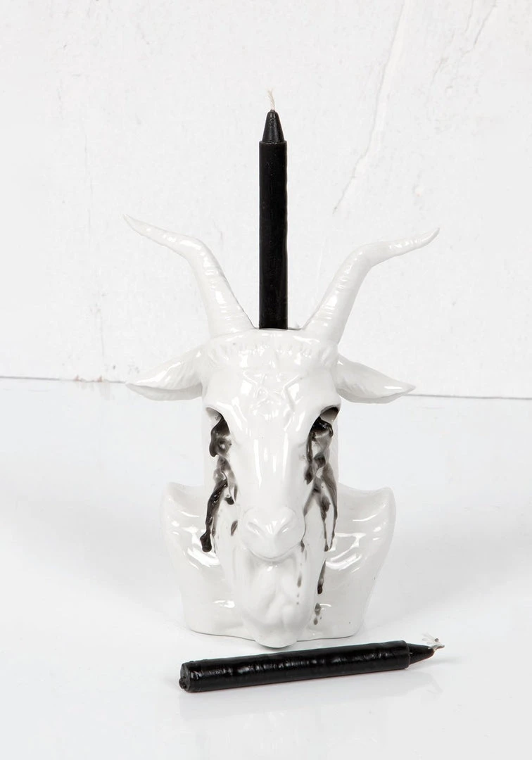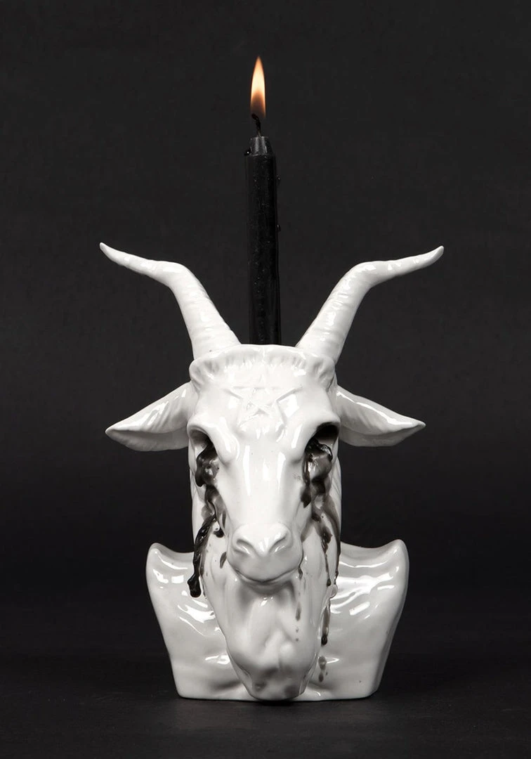 β₯ Unusual crying Baphomet candle holder in pure white ceramic