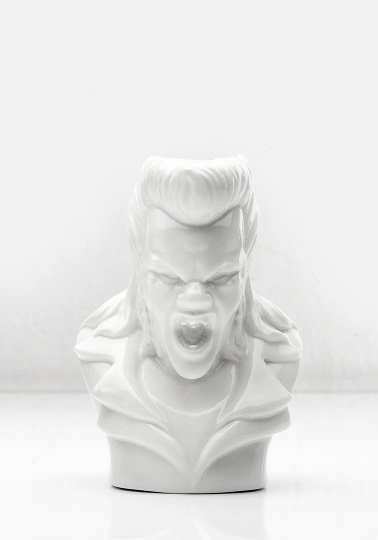 – Ceramic 80s vampire candle holder with cracked white glaze