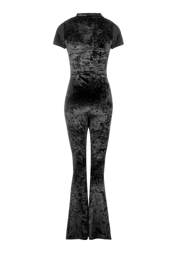 ✦ Collared short sleeve velour jumpsuit