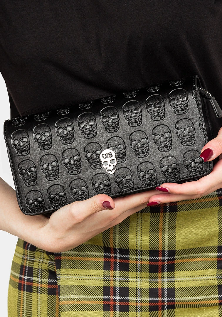 βΆΒ Black faux leather debossed skull clutch