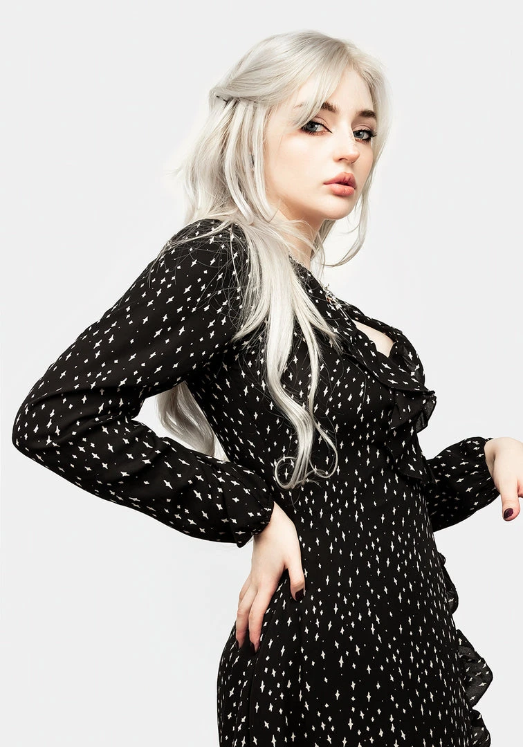 ❦ Soft, sultry ruffles down neckline & full hemline