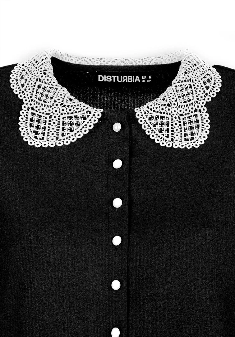 β¦ Long sleeves with gathered contrast ruffle cuffs