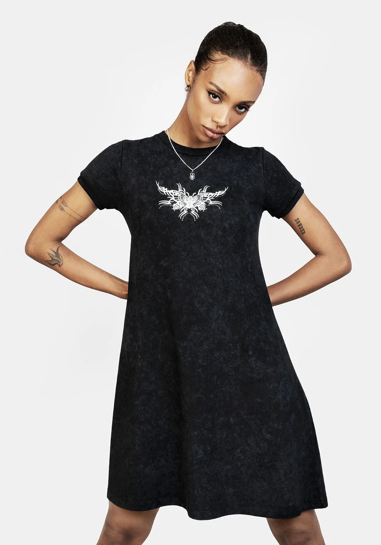 ✦ Black acid wash T-shirt dress