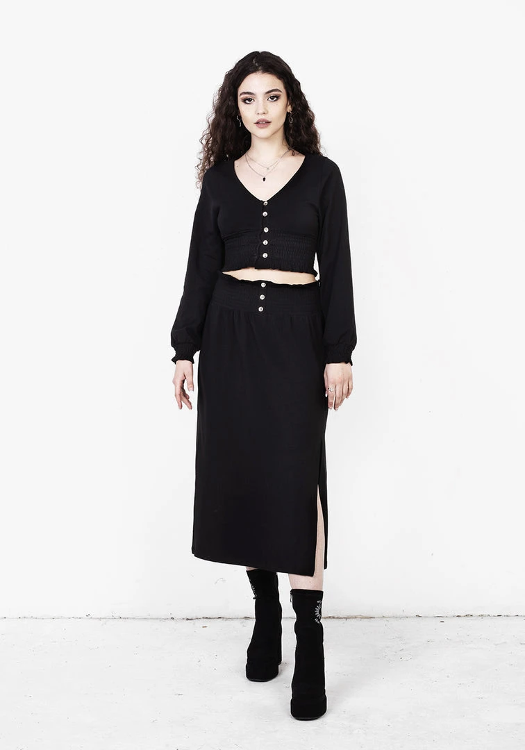 ❦ Black midaxi skirt with front leg split