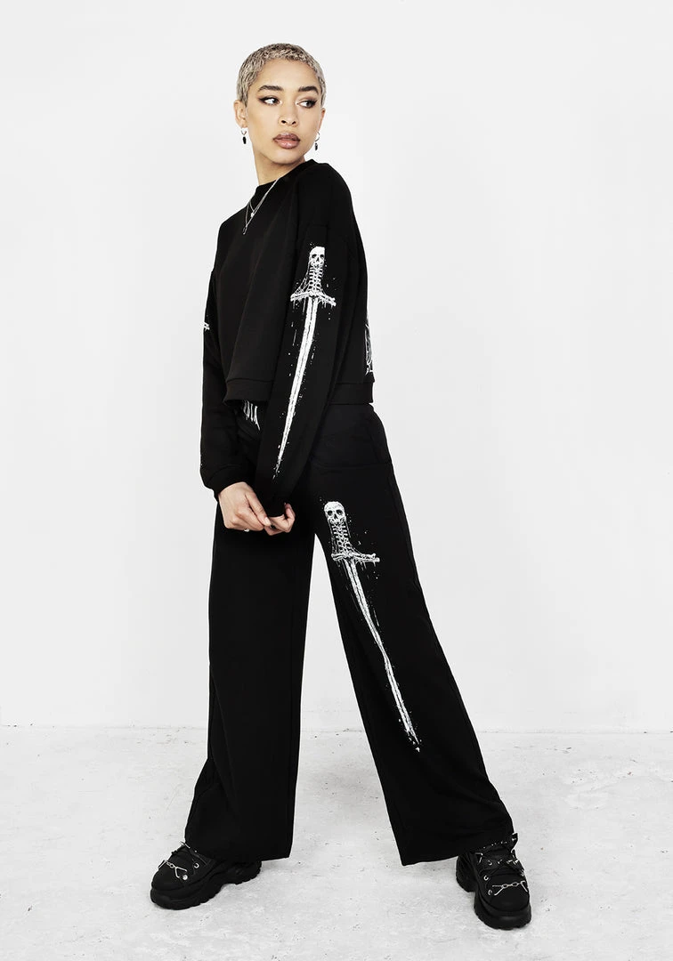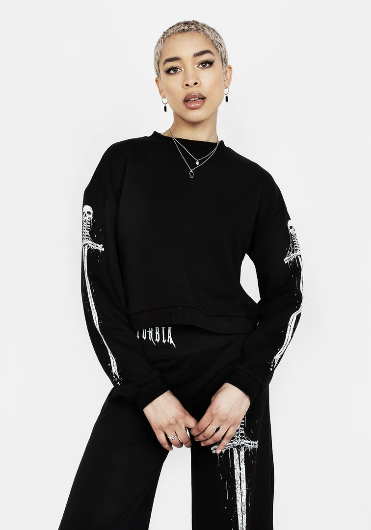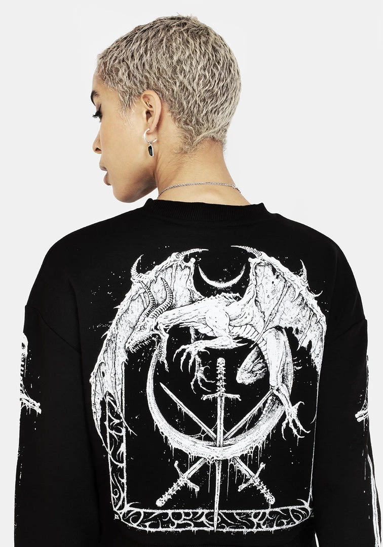 ✦ Black crop sweater with back and sleeve graphics