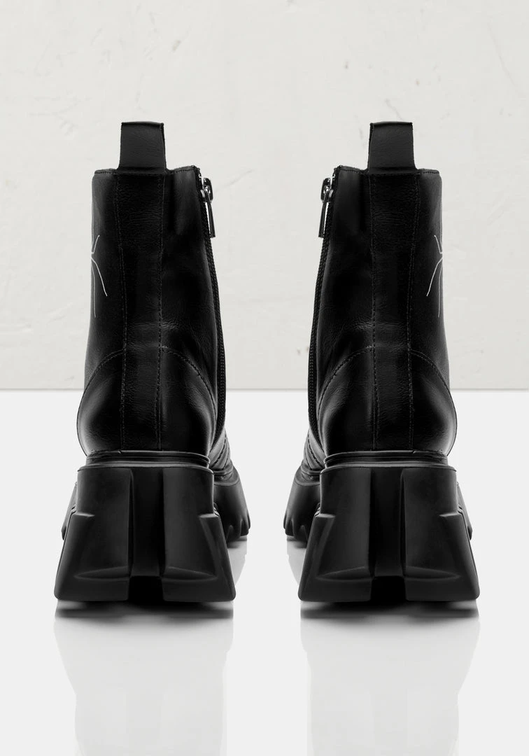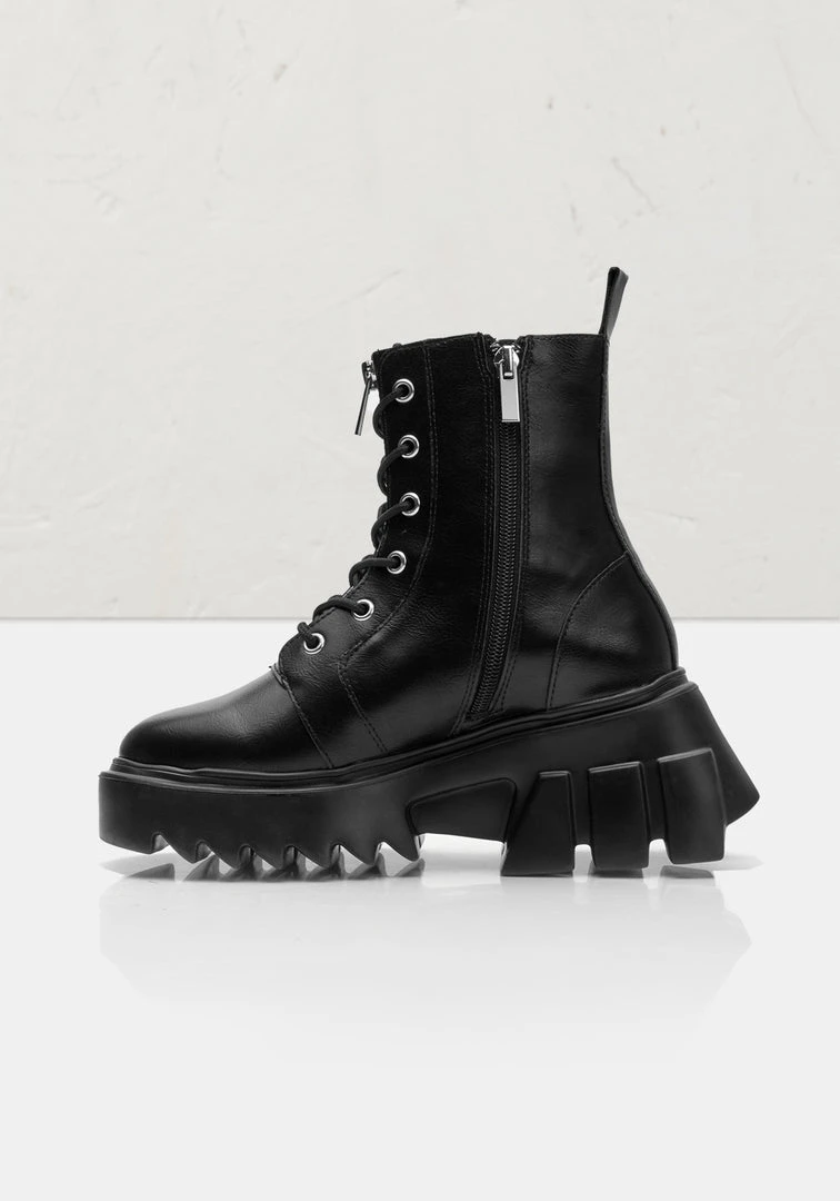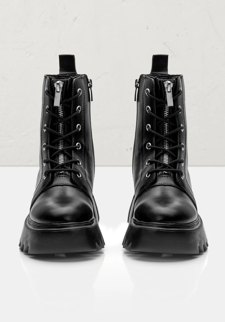 ❦ False zip closure under black laces & silver eyelets at front
