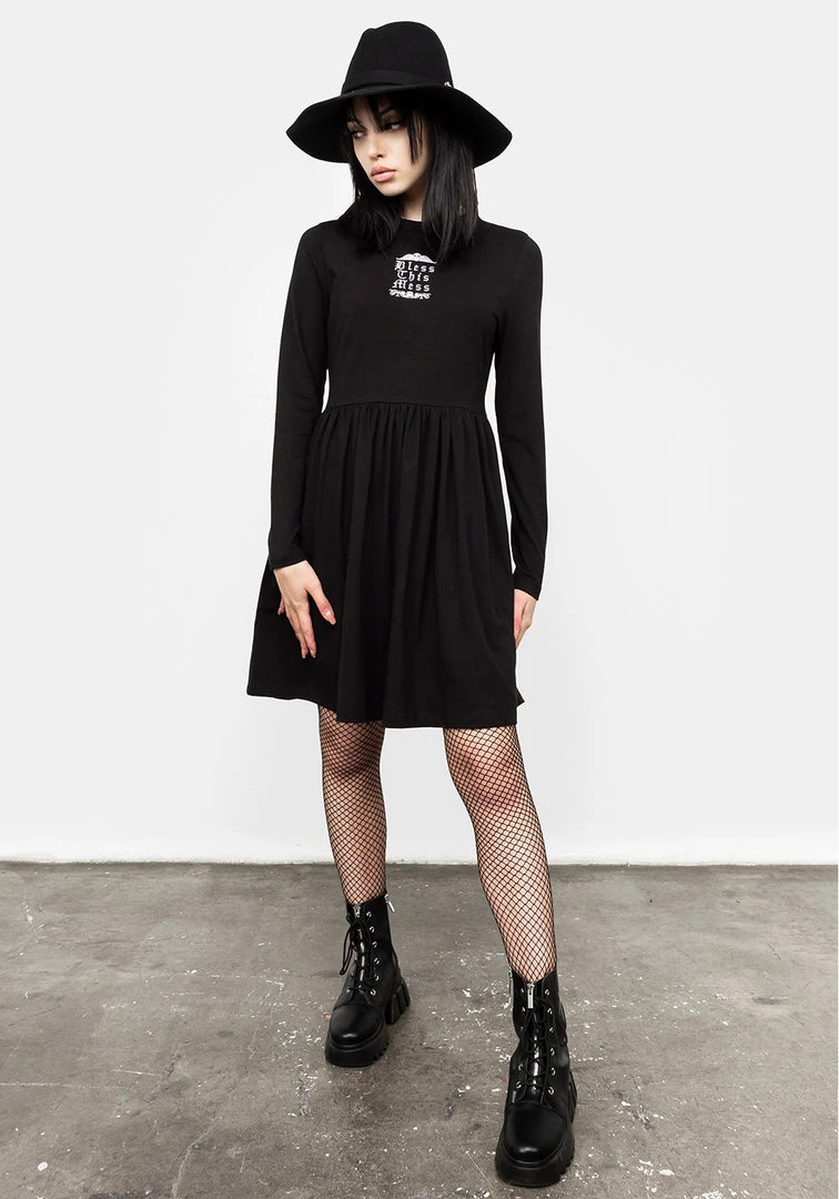 β¦ White chest embroidery reads ‘Bless This Mess’