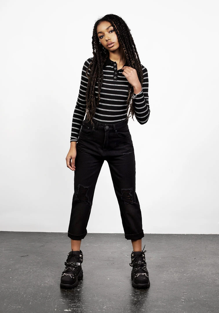 β΅ Striped collar bodysuit