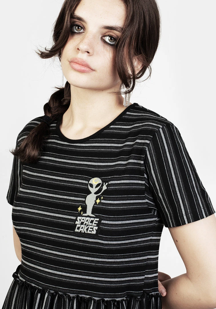 ✦ Striped embroidered skater dress