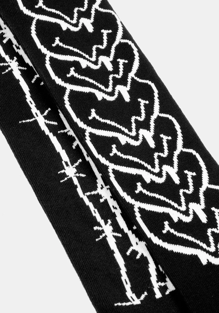 βΊ Black grungy long socks with statement print