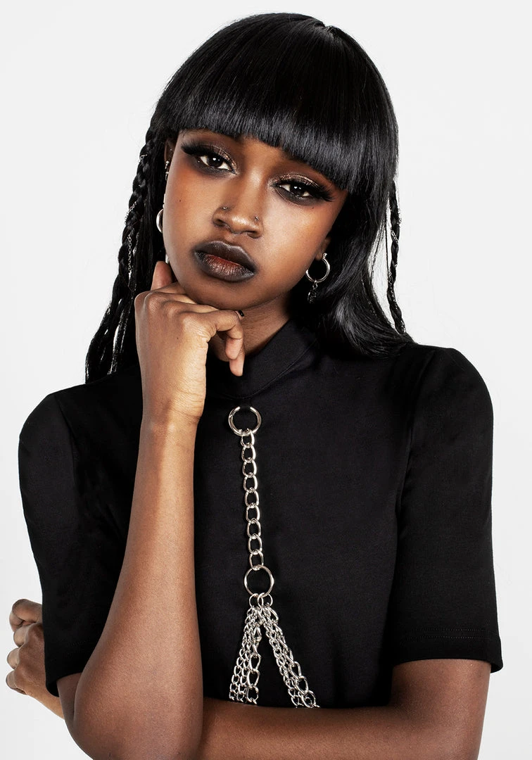 ⬤ Hinged O-ring harness connectors attach via fixed fabric loops at side seams & reinforced mock neck