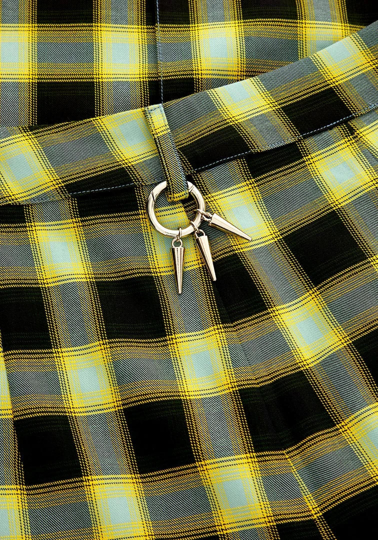 βΆ Blue, black & yellow check fabric (slight stretch)