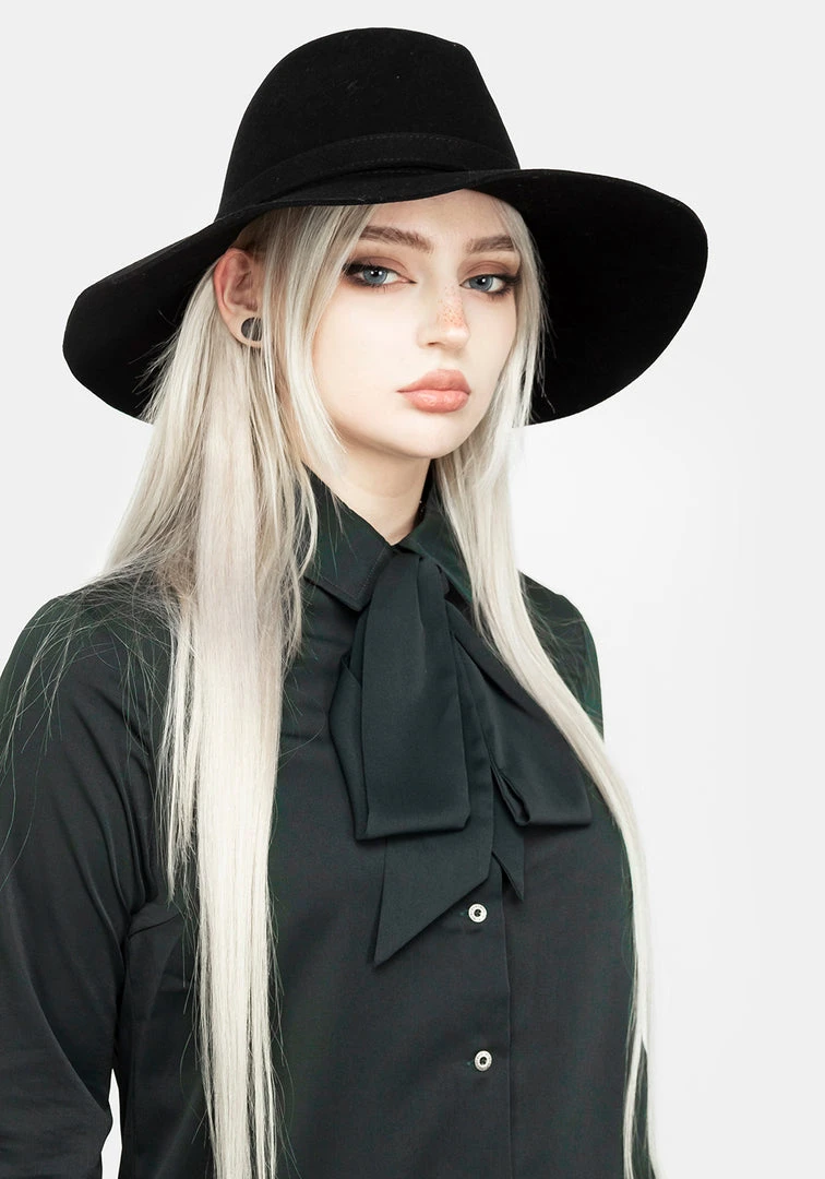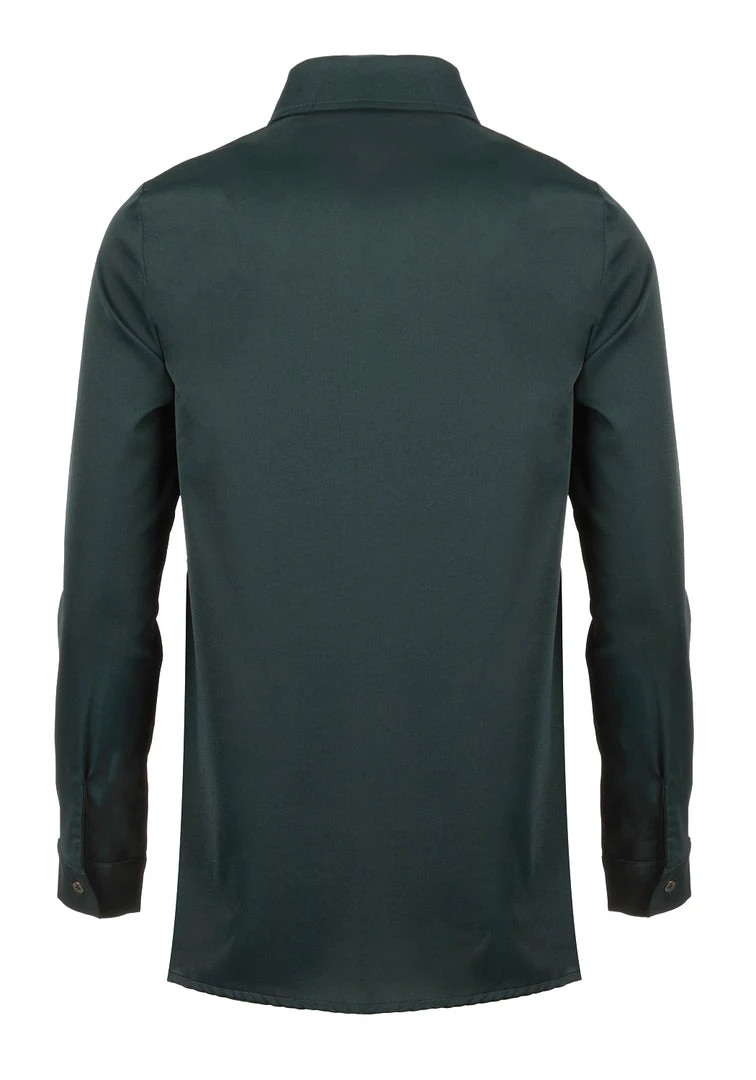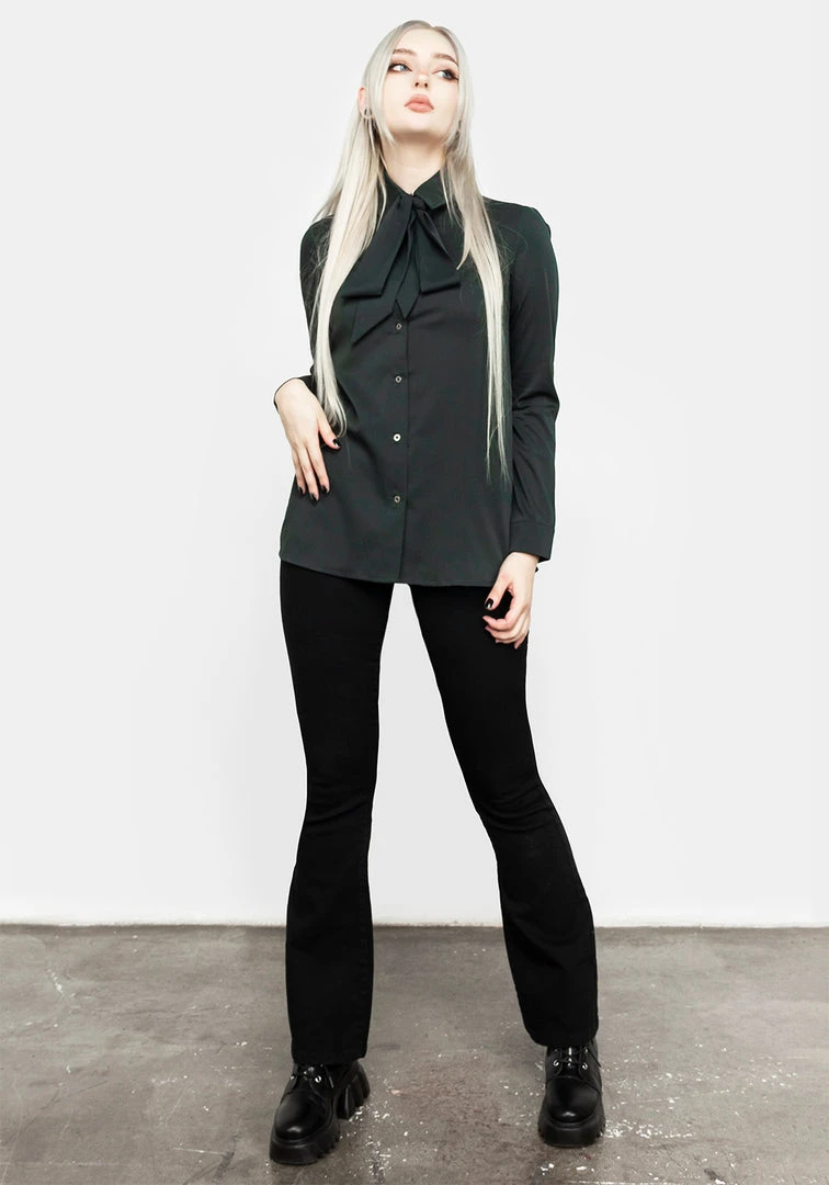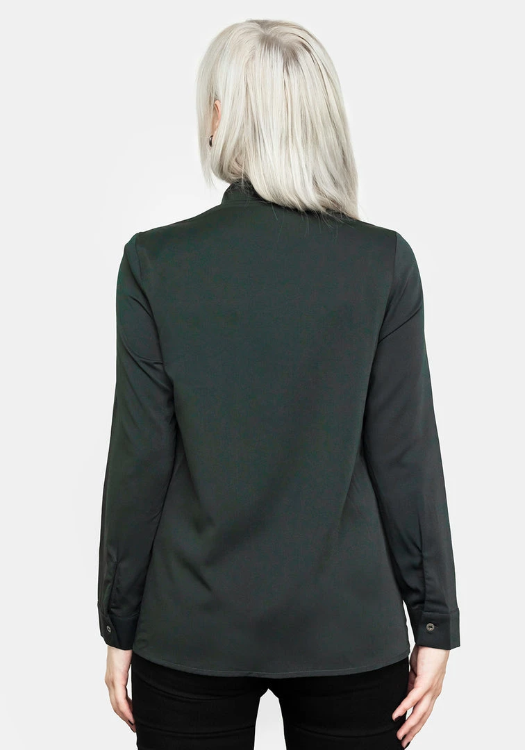 β¦ Forest green pussybow shirt