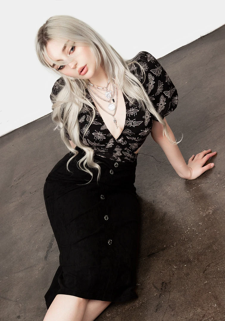 ❅ Green diamante buttons down centre-front (non-functional placket)