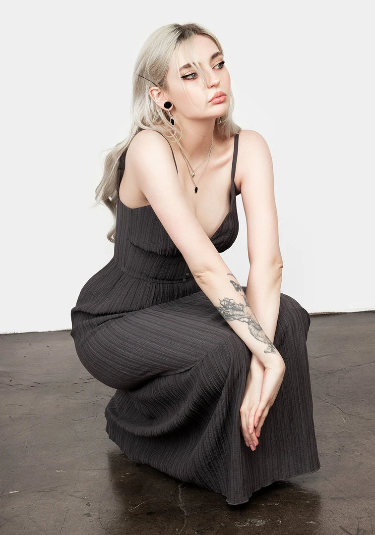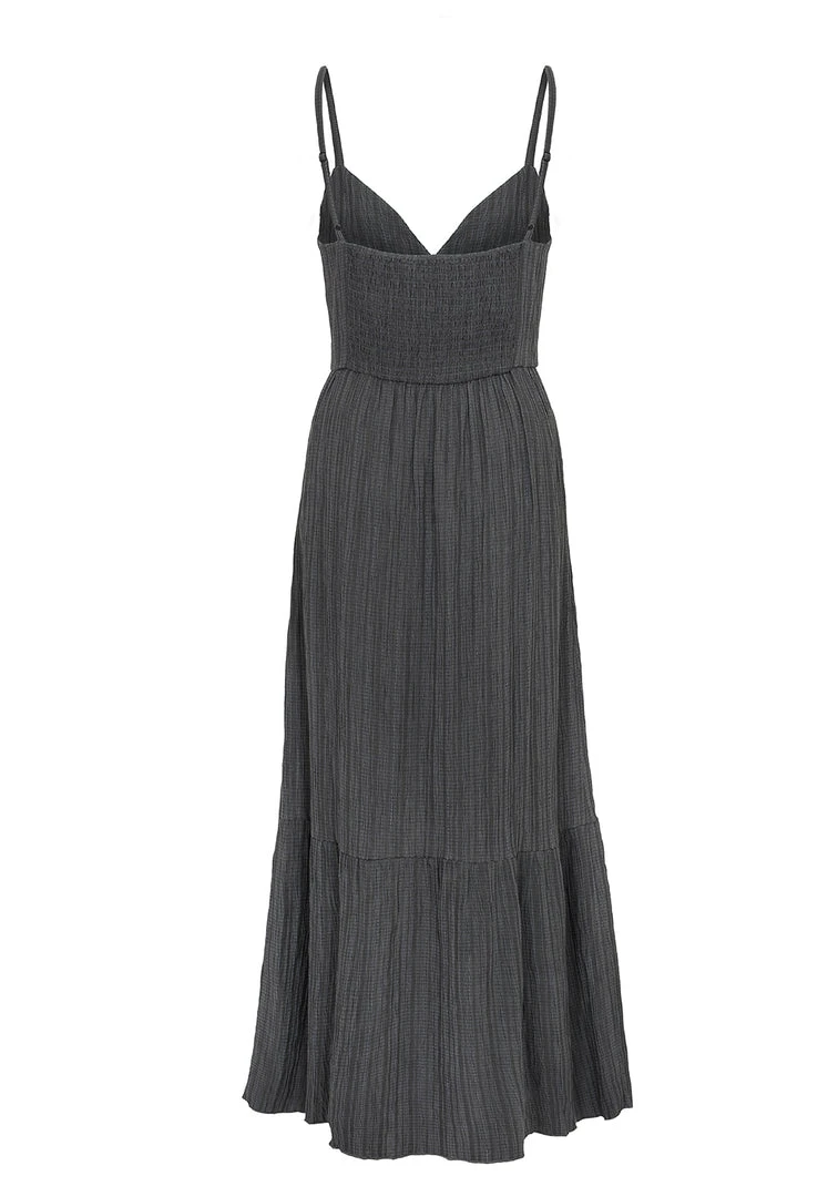 ✹ Grey textured midi tiered dress