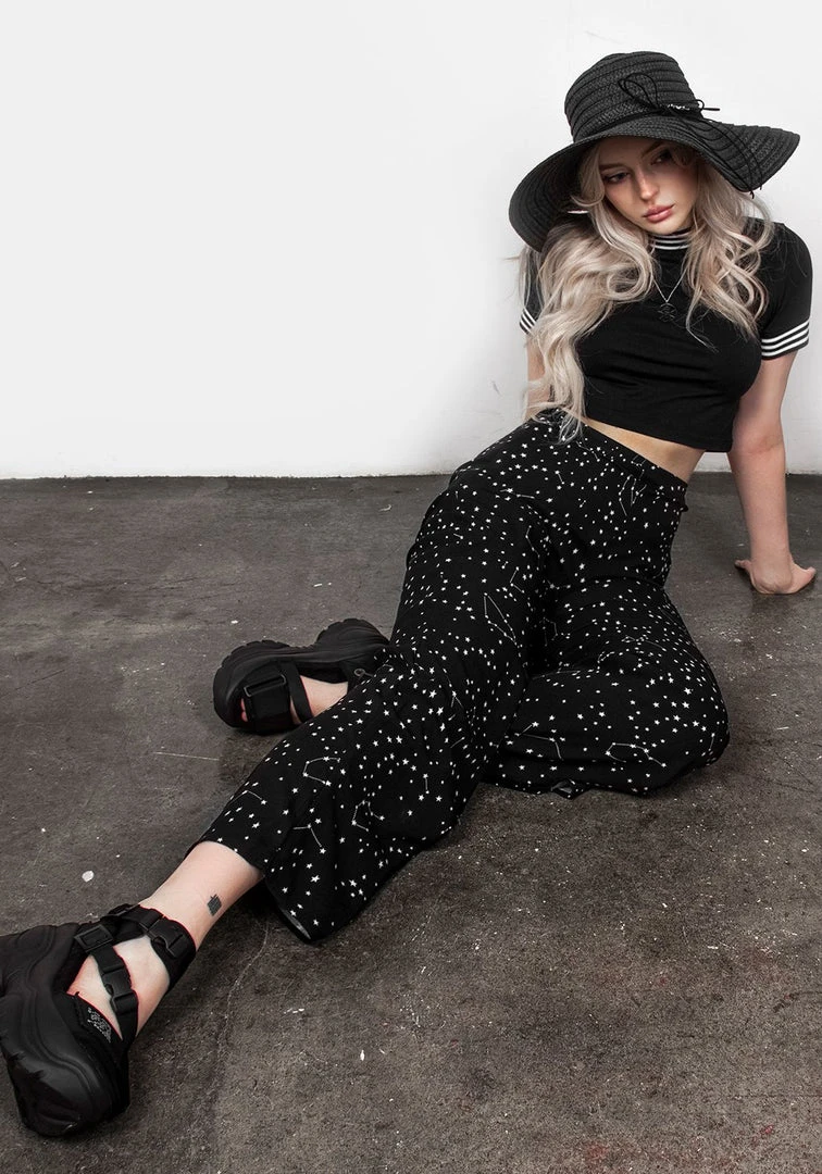 βΆ Wide bell bottoms create leg-lengthening silhouette