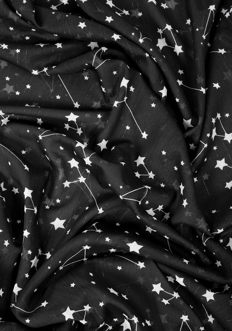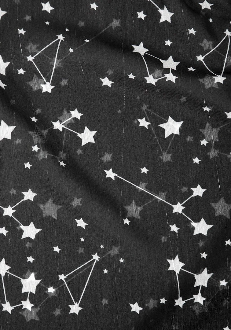 Sheer black fabric with all-over star print in white