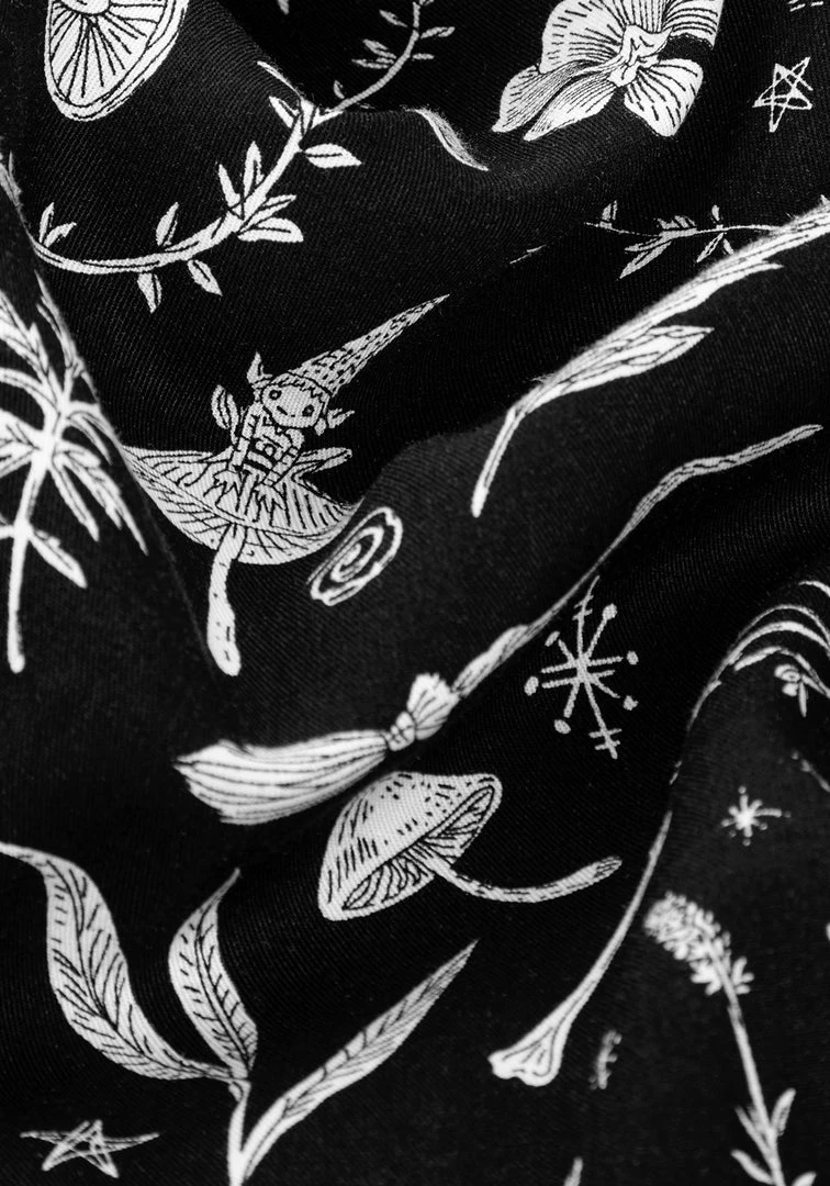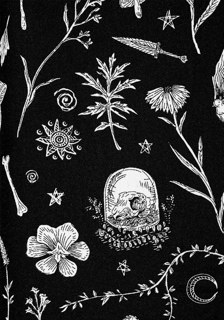 ☽ All-over bewitching floral and faunal print