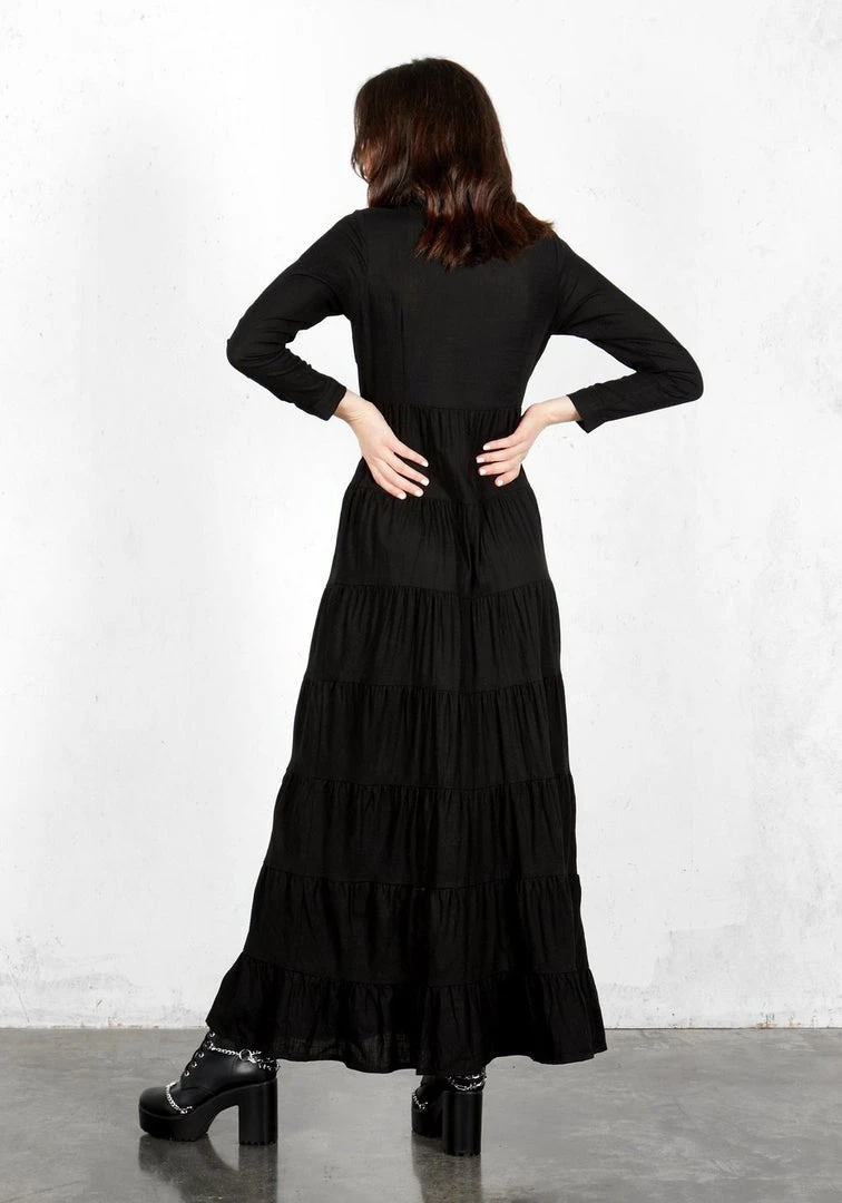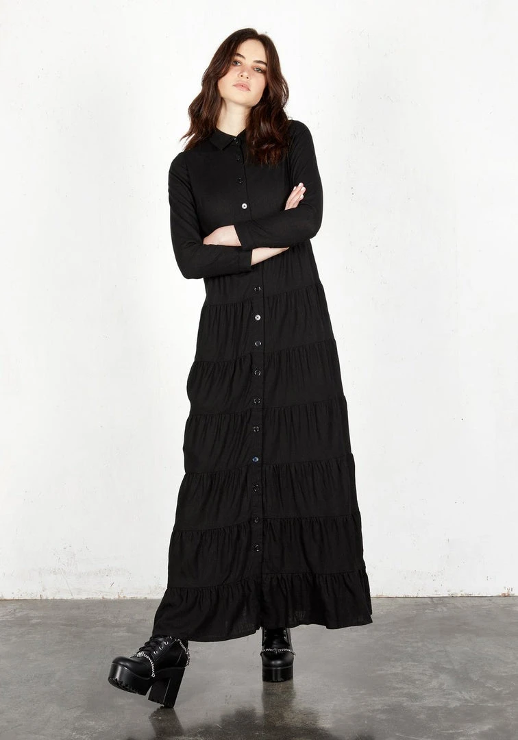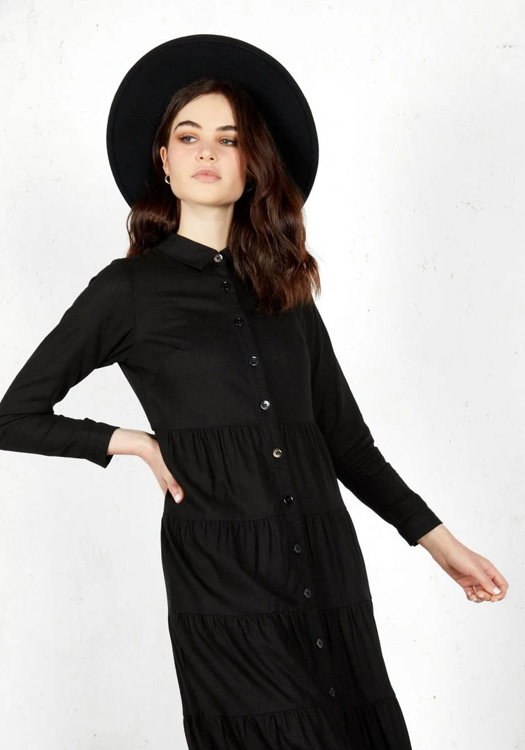 βΉ Maxi tiered long sleeve shirt dress in black