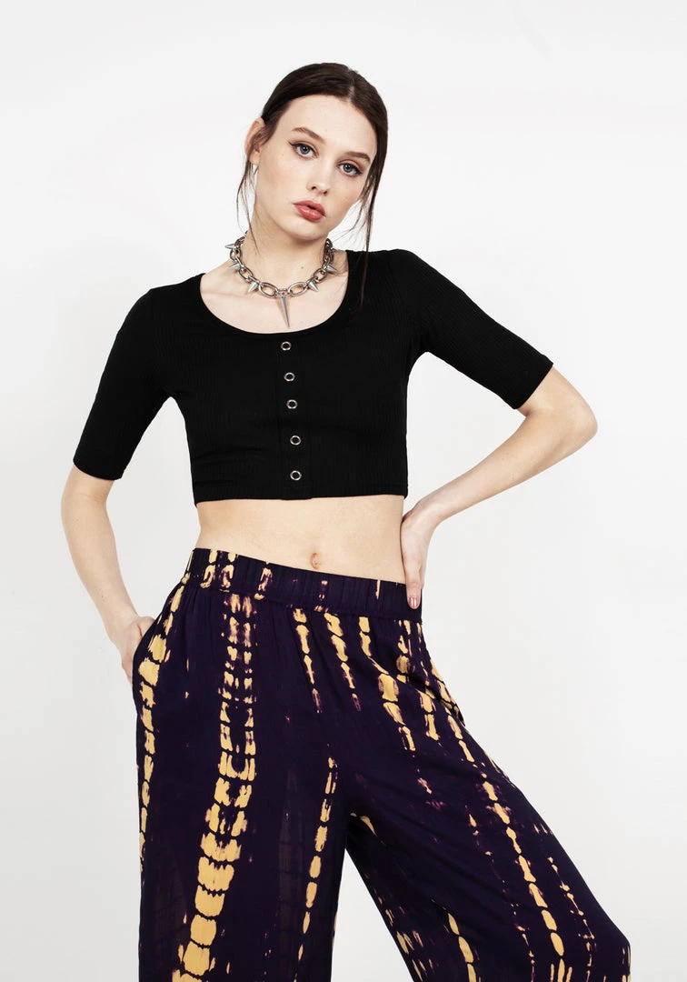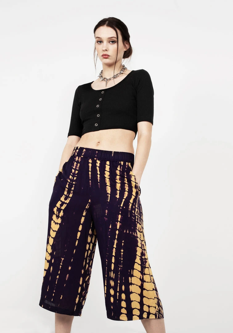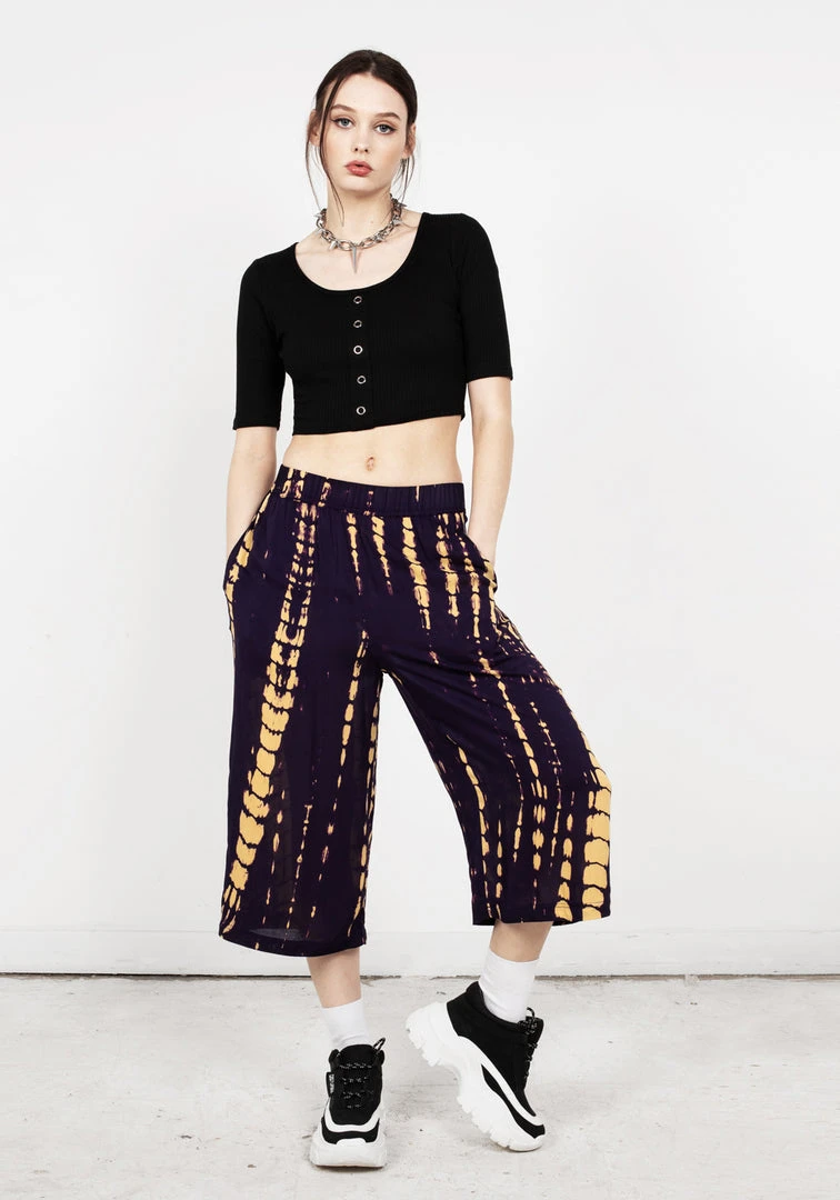 β§ Crop wide leg trousers in purple tie dye