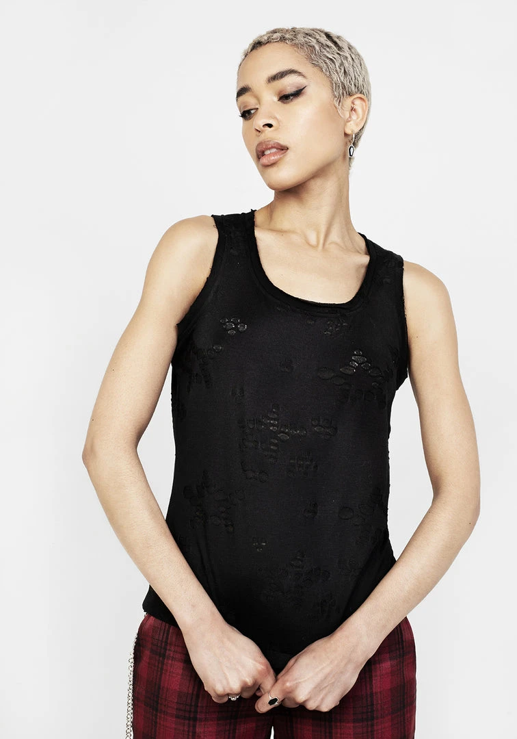 ✦ Black distressed tank top