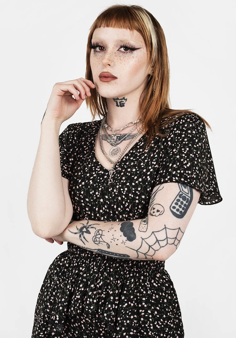 ✦ Soft V-neck and delicate lettuce-hemmed sleeves add shape and movement
