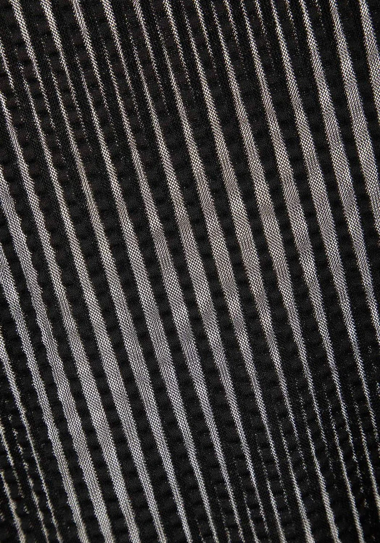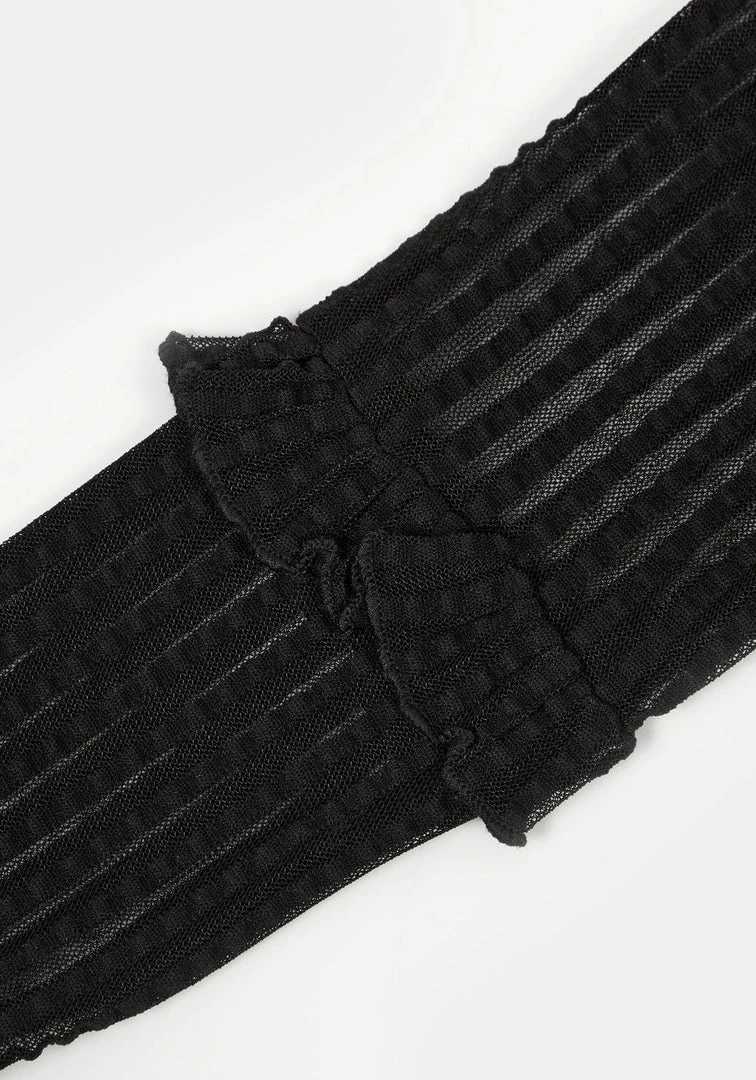 ✞ Black mesh ruffle top with seersucker stripes