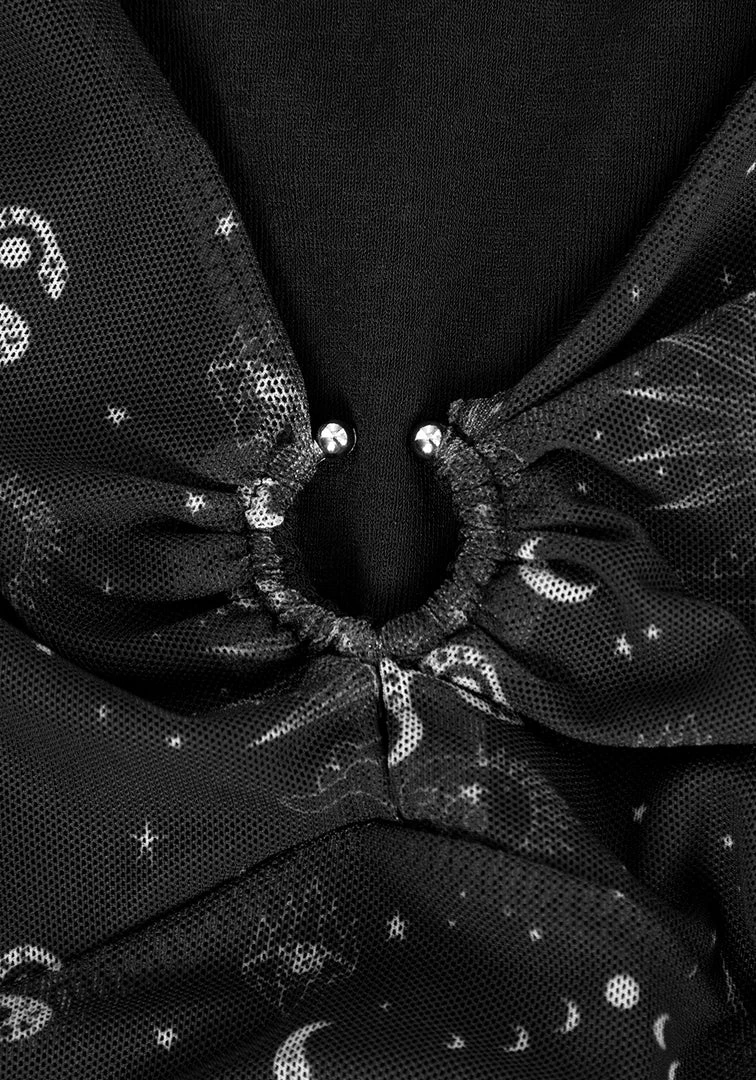 ✦ Silver horseshoe pulls neckline into delicate ruching