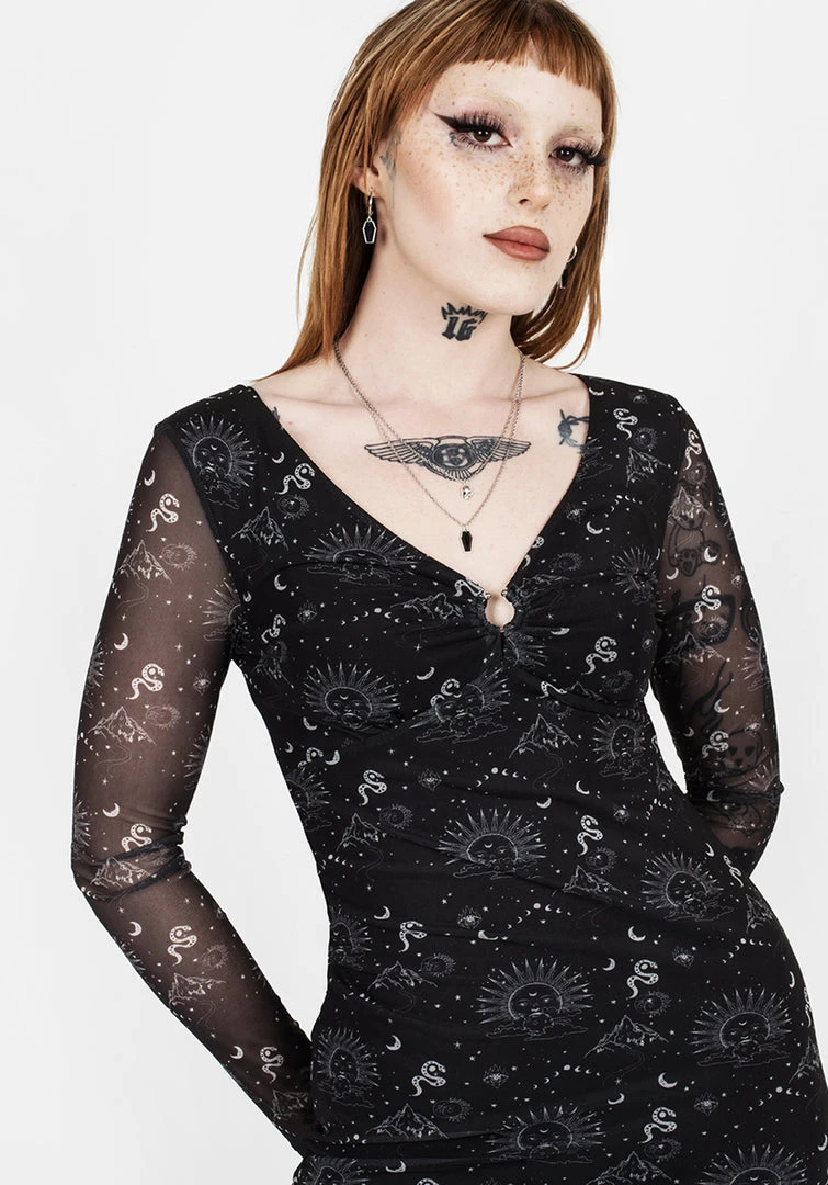 ✦ Long sleeve sheer mesh overlays sleeveless slip