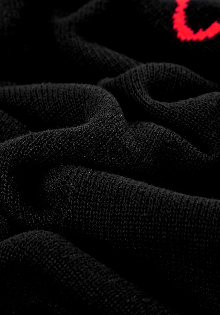 βΈ Black base with red yarn flame design