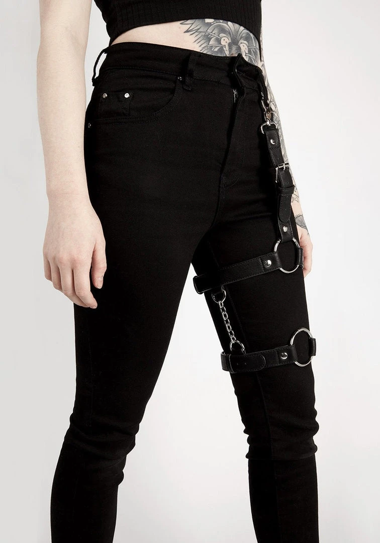 ✦ Adjustable leg harness with metal hardware